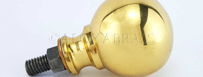 2 cast B2 medium size 9 cm solid Brass polished BED KNOB vintage style COT hollow 3.1/2″ high BALL threaded insert