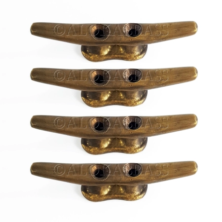 8 CLEAT tie downs solid heavy brass boat cars tieing rope hooks 14 cm hand made ship 5.1/2″ ship chandlers bronze patina