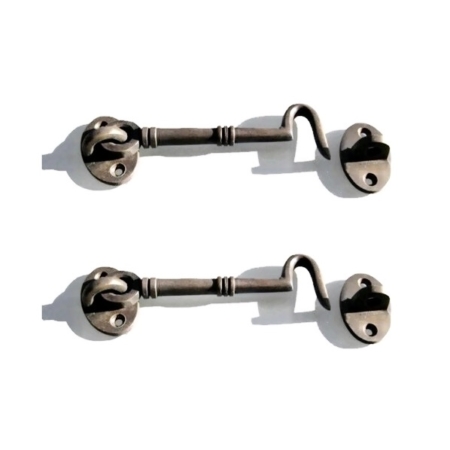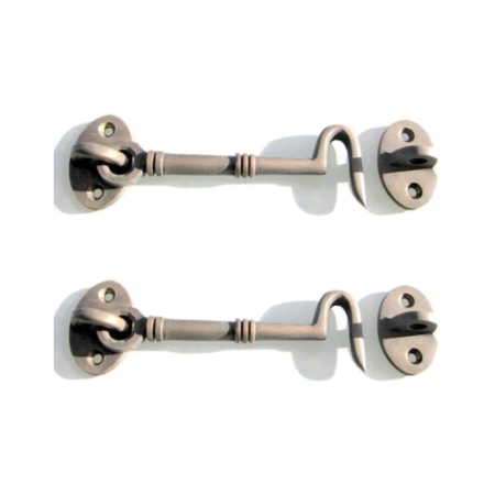 2 small cabin hooks door catch 4 ” plain period HOOKS 11 cm solid heavy brass furniture vintage age old style heavy 4.1/2″ old style bronze patina