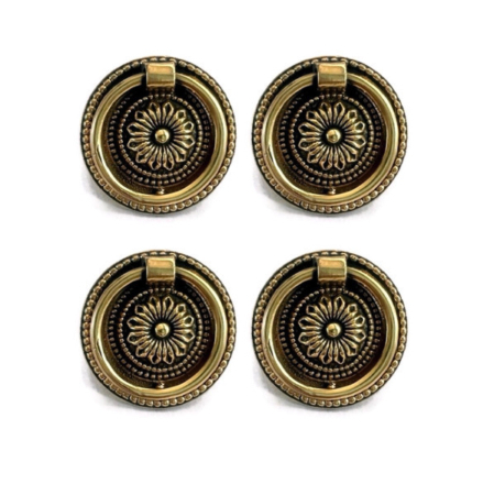 4 large version Vintage Brass 2″ Victorian 4.9 cm Floral Sheraton 2759 F watson Round Ring Pull Cabinet Drawer Dresser Handle round Knob Pulls bronze look aged