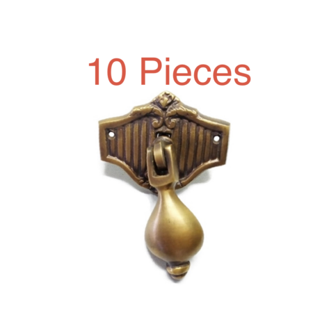 2 pulls drops handles antique style solid brass vintage old replace A7P drawer small door heavy natural oxidized