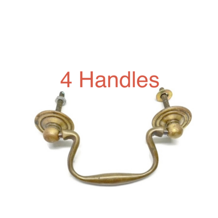 4 small 3″ center to center back plate bale handles swan neck heavy SOLID pure watsonbrass 1685F BRASS old style bolt house antiques hand made cabinet bronze colour back plate