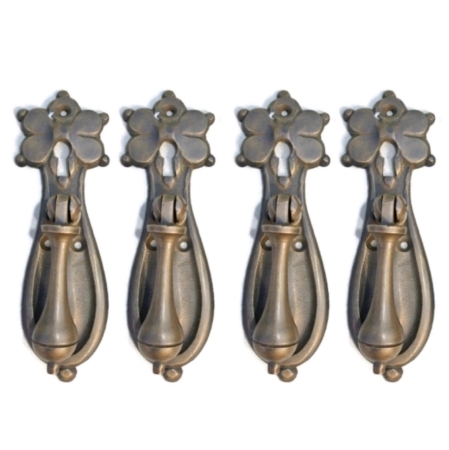 4 pedestal flower drop Pull knob pulls handles watson 4″ brass door key hole vintage old style drops knobs hand made cabinet knob back plate bronze patina