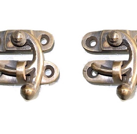 2 heavy medium Nice tiny FORK jewellery swing arm small box Latch 40 mm catch solid pure brass polished doors trinket vintage old antique style jewellery cabinet lock