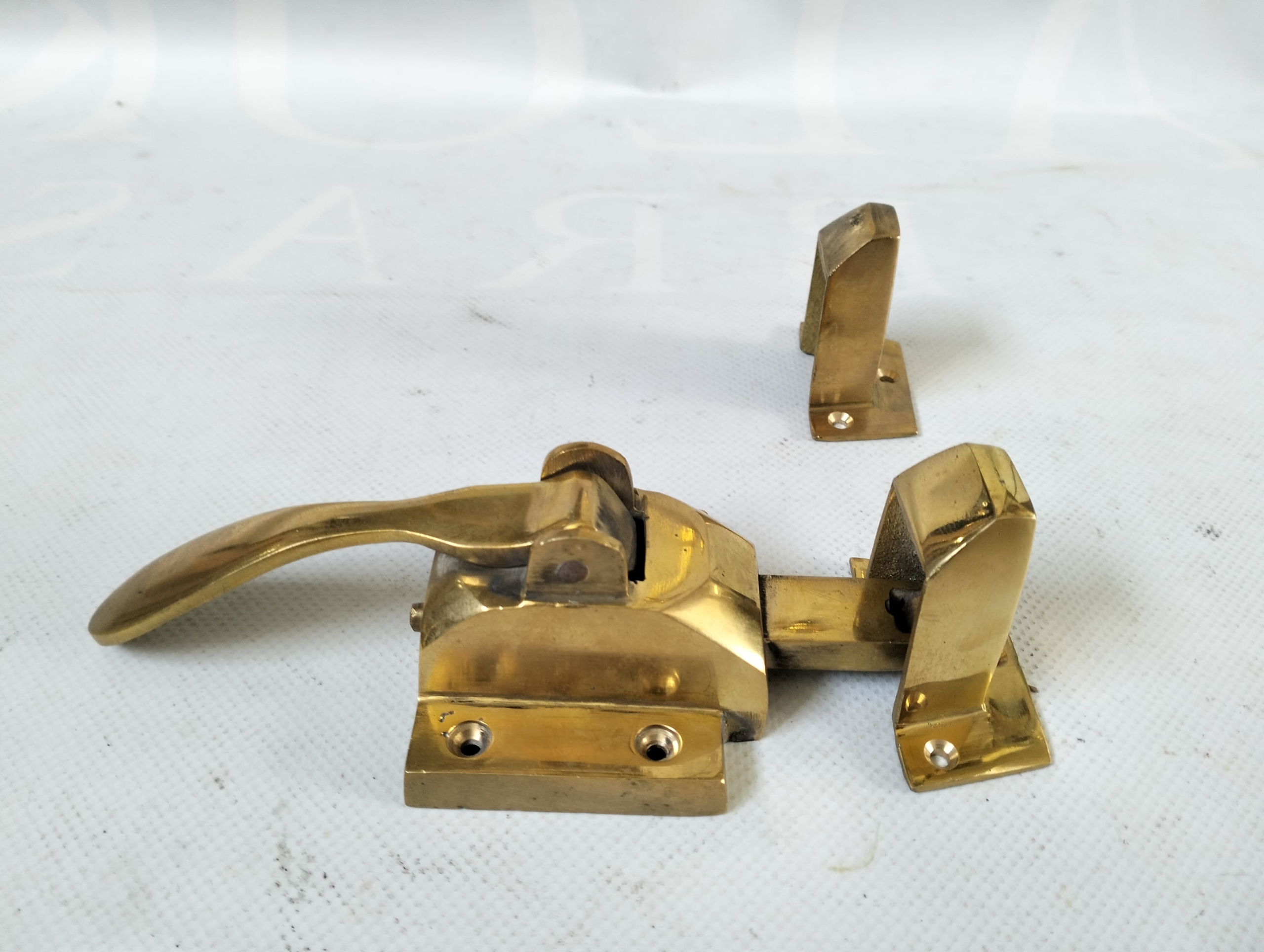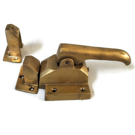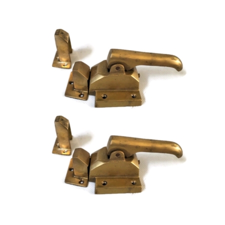 2 SETS solid brass large polished Rare Ice Box Catch offset rebated Lever action Heavy Solid lead light cabinet ice box chest hand made 8″ square
