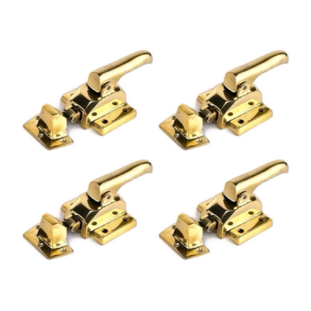 4 SETS solid brass large polished Rare Ice Box Catch offset rebated Lever action Heavy Solid lead light cabinet ice box chest hand made 8″ square