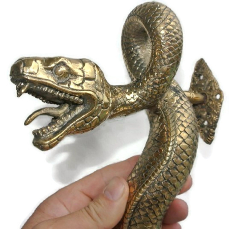 SNAKE python brass door PULL old style aged heavy hollow house PULL handle 35cm cobra hand made stunning left or right hand