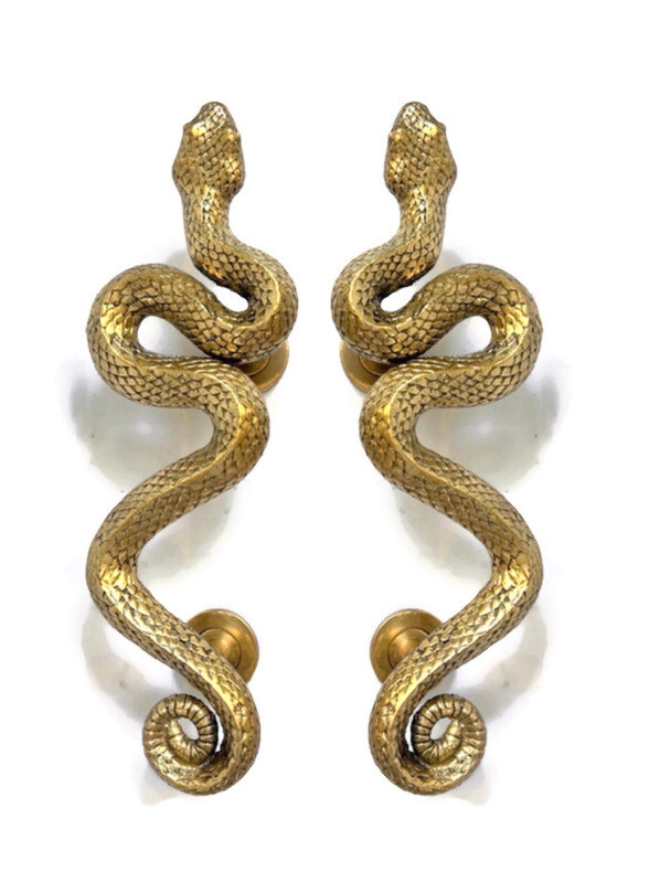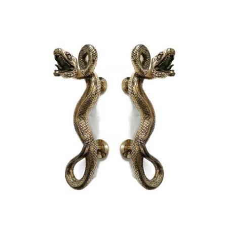 2 hollow SNAKE python brass door PULL 13″ inches old style aged bronze patina heavy house PULL handle 35cm stunning hand made