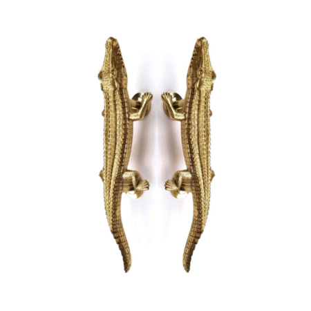 Basic Pair left & right CROCODILE shape 12″ Brass alligator aged Door Pull heavy Handle Grab Old Style 30cm amazing screw fix screw heavy