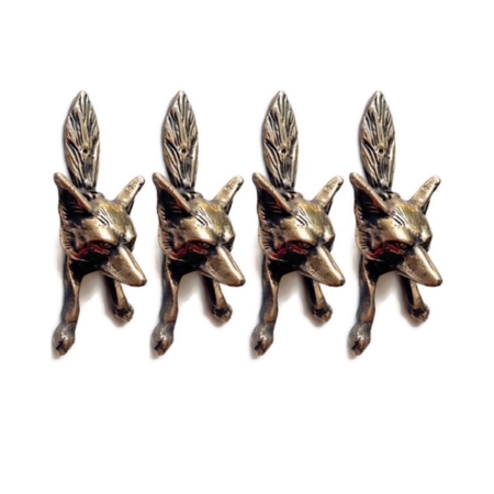 4 small FOX head old heavy front Door Knocker SOLID BRASS vintage old style bronze patina 15 cm bronze patina