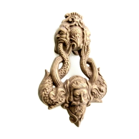 very heavy RARE Solid Brass Door Knocker NEPTUNE Head Surrounded By Grotesque Dolphins Vintage Front Door Knocker Door Decor bronze patina