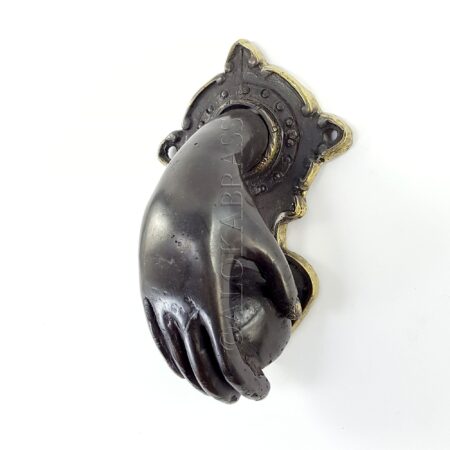 small hand fist ball front Door Knocker hand 6.1/2″ inches long fingers solid pure brass hollow 16 cm vintage old style aged hinged pull banger bronze natural oxidized patina