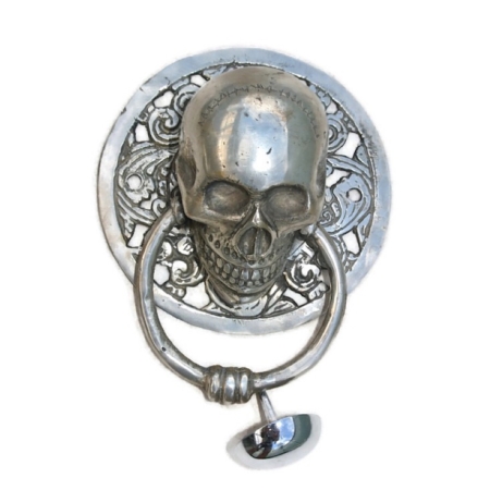 large round SKULL head ring pull 11.5 cm Handle pure brass SILVER PLATED over 100% brass 4″ day of the dead door KNOCKER patina skull skeleton ring grab