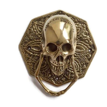 large SKULL antique brass POLISHED head ring pull Handle pure 100% brass 4″ day of the dead door KNOCKER Art Scary Decoration Interior Design