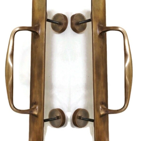 2 Narrow BOLT FIX 1.1/2″ wide 12″ inch long barn door grab GLASS Solid Brass Large plain Handle 30cm Pulls Trunk Old Style aged patina rectangle