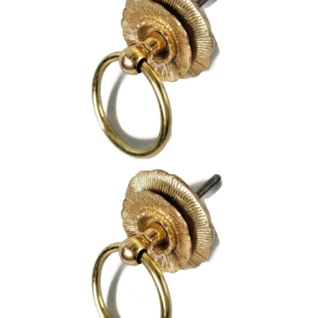 2 medium version 5 cm handle ring pull flower solid 100% brass heavy old vintage asian style DOOR 2″ bronze patina cast heavy solid brass