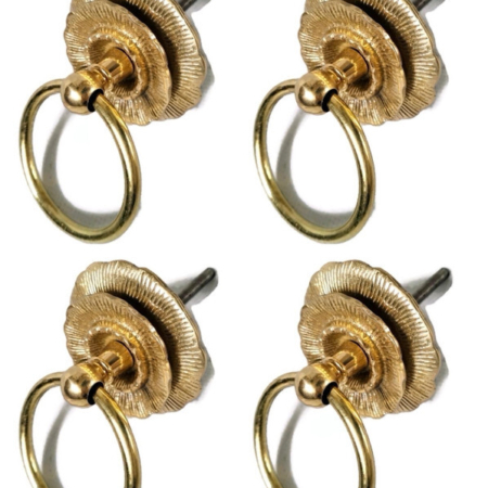 4 medium version 5 cm handle ring pull flower solid 100% brass heavy old vintage asian style DOOR 2″ bronze patina cast heavy solid brass