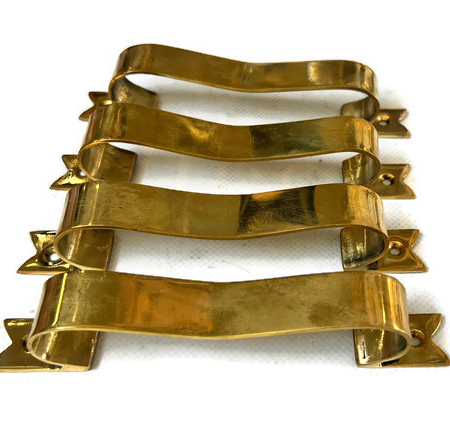 4 pieces D PULL 6″ inch handle heavy 15 cm ribbon solid heavy brass old style kitchen GRAB