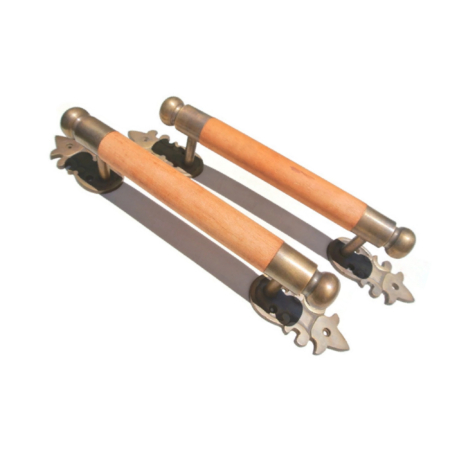 2 wooden handle DOOR 13″ antique vintage asian style solid brass ends BOX 13 ” MAHOGANY raw