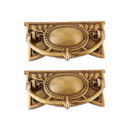 2 large pulls drops 4.1/4 ” inches art nouveau watson A10 deco handles 11 cm antique style bronze patina solid brass vintage old replace drawer heavy