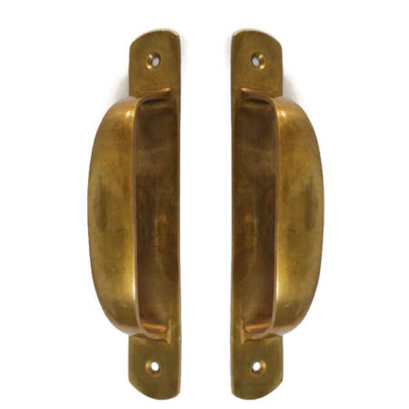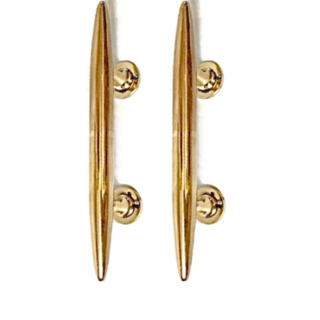 2 pieces small version NICE heavy brass 8” long torpedo shape D pull brass Door Handle old Vintage old Style grab pointy 20 cm