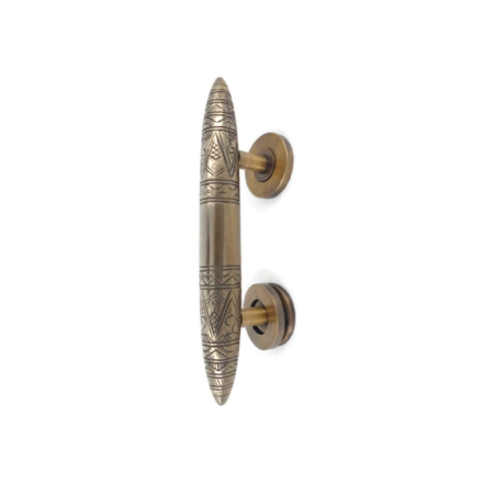 small ENGRAVED pattern version NICE heavy brass 8” long torpedo shape D pull brass Door Handle old Vintage old Style grab pointy 20 cm