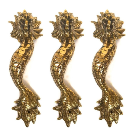 3 Dragon door pull 30 cm aged brass vintage old style house handle 12″ long Bronze patina