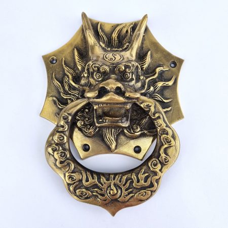 large Solid foo dragon heavy 14 cm wide pure Brass Door Knocker 8″ long Chinese dog Head ring pull in mouth Vintage Front Door Knocker Door Decor