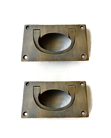 2 heavy RECESSED pulls handles BOX antique watson 1752 F solid brass vintage old replace drawer 3.1/2″ bronze patina