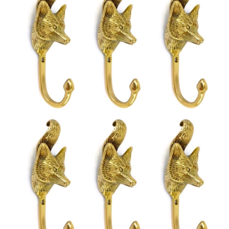 6 small version old style 11 cm Vintage FOX Head 4.1/4″ Solid Brass hook Antique Strong Wall Mount Coat Hat Hook old vintage style hand made pure brass aged