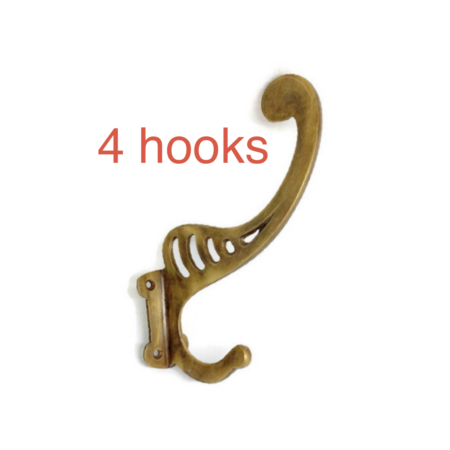 4 curled COAT hall HOOKS solid brass watson 249 furniture antiques vintage age old style curly bronze patina hall stand