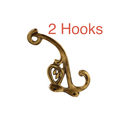 2 COAT HOOKS solid brass old style 5″ flower hall stand watson 490A vintage old antique style