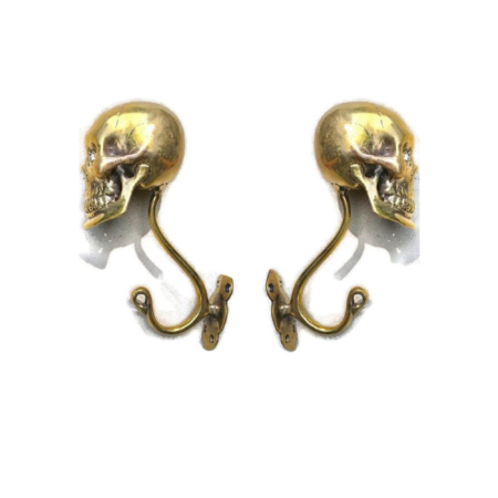 2 small 3.1/2″ inches aged SKULL HOOKS solid pure 100% BRASS hollow old vintage style 9cm long spine hand made hanger