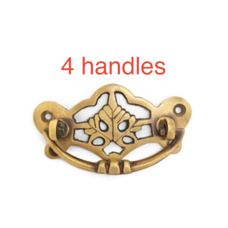 4 BUTTERFLY shape pulls handles antique solid brass vintage old replace drawer heavy knobs