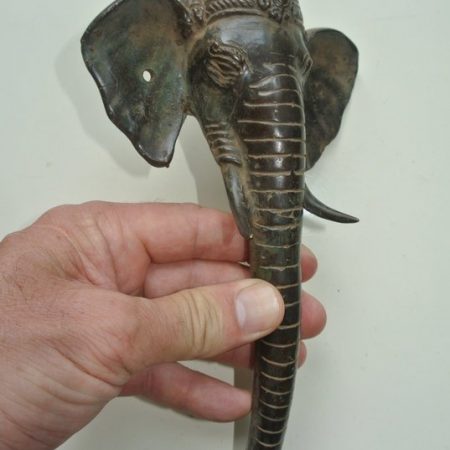 Ganesha Elephant DOOR pull handle 12″ long solid BRASS trunk tusks door knob aged 30 cm antique sea side oxidised vintage style