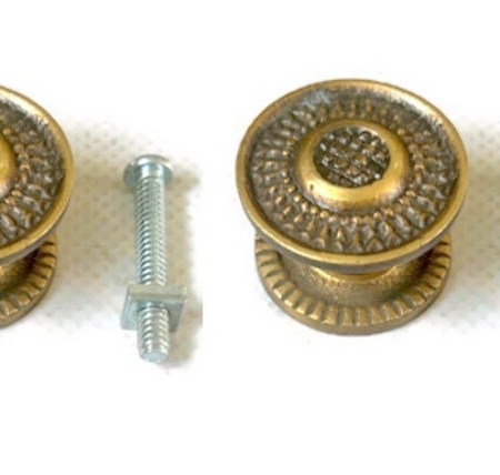 2 small cast KNOB pulls handles solid aged heavy brass knobs 1″ watson 1743F large very heavy 25 mm