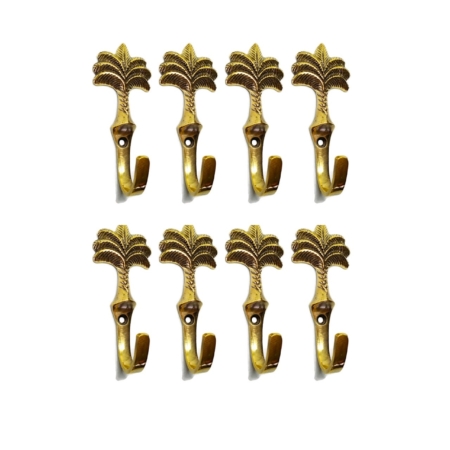 8 aged bronze patina 4″ palm tree COAT HOOKS 10 cm small solid brass antiques vintage old style 100mm hook
