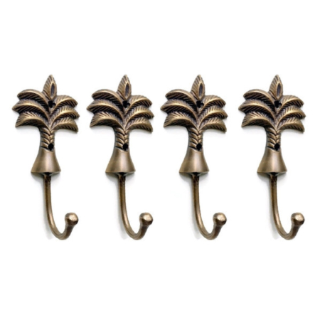 4 aged bronze patina 5″ palm tree COAT HOOKS 12.5 cm medium solid brass antiques vintage old style 125 mm hook