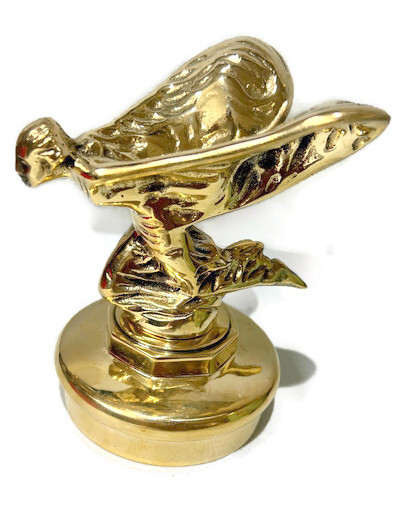 POLISHED BRASS new model Small Rolls Royce 6.1/2″ inches high car statue flying lady heavy brass bronze style emblem INCLUDES BASE cast 16.5 cm Spirit of Ecstasy bolt deco ILYA