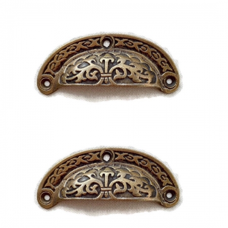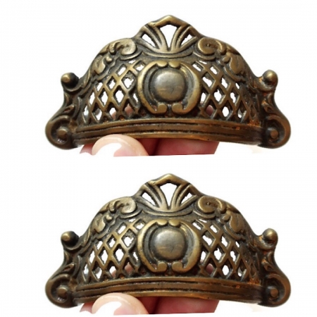 2 open pattern shell 10 cm shape watson 3060 pulls handles 4″ antique solid brass vintage old replace drawer 105 mm bronze patina