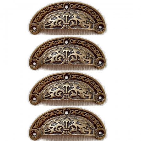 4 open pattern shell 10 cm shape watson 3060 pulls handles 4″ antique solid brass vintage old replace drawer 105 mm bronze patina