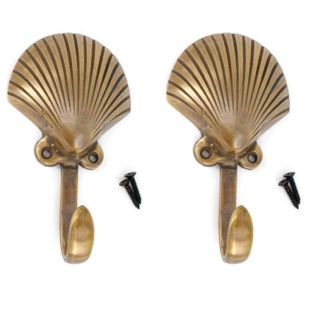 2 shell old style Vintage style 6.1/4″ Solid Brass hook Strong Wall Mount Coat Hat Hook old vintage style hand made pure brass aged 15cm