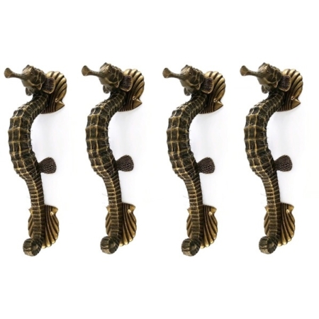 4 pieces large SEAHORSE solid brass door old style house PULL handle 13″very heavy aged grab