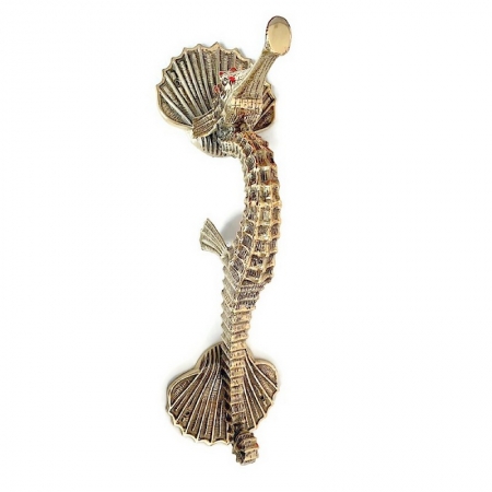 Massive 24″ inch long Solid very heavy 100% Brass aged polished finish SEAHORSE Door handle pull 60 cm bronze colour seaside beach outdoor gate house