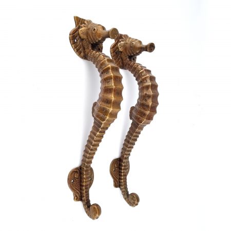 2 BACK to BACK Large brass 35 cm SEAHORSE solid hollow heavy brass door aged old style house PULL handle 13.1/2″ long outdoor natural oxidized patina