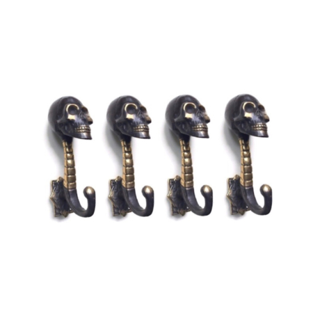 4 small version 5 ” inches antique aged bronze style SKULL HOOKS solid pure BRASS hollow old style 13.5 cm long spine hand made hanger