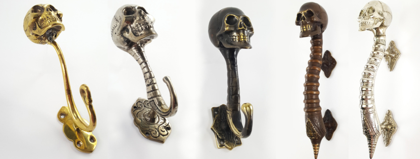 2 small 3.1/2″ inches aged SKULL HOOKS solid pure 100% BRASS hollow old vintage style 9cm long spine hand made hanger