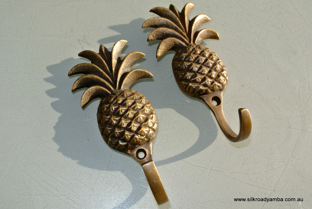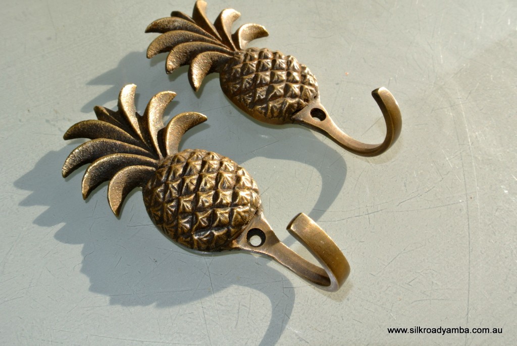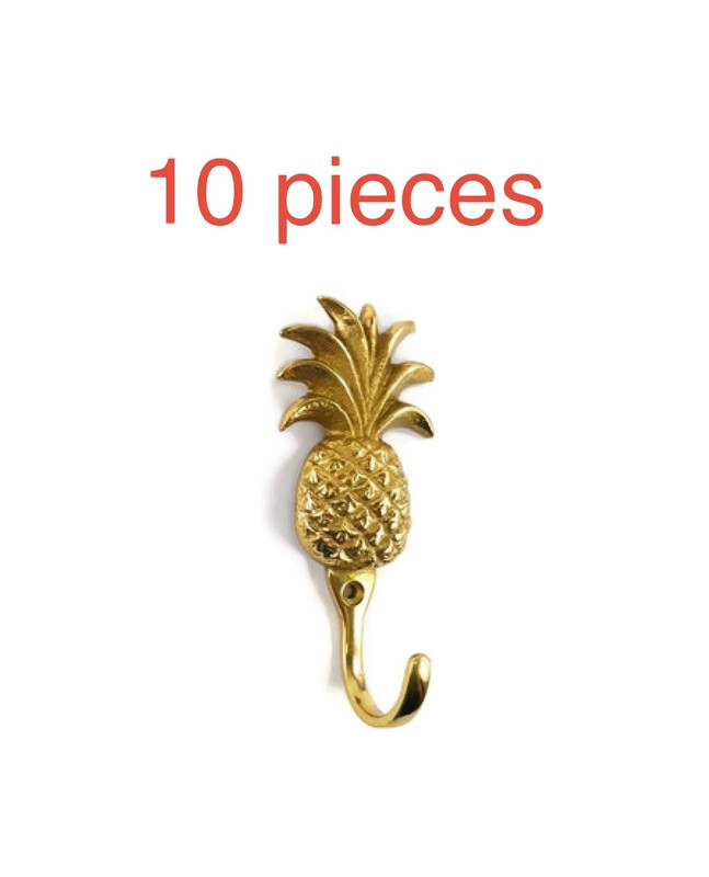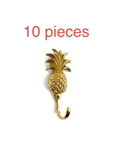 10 solid brass PINEAPPLE shape HOOKS