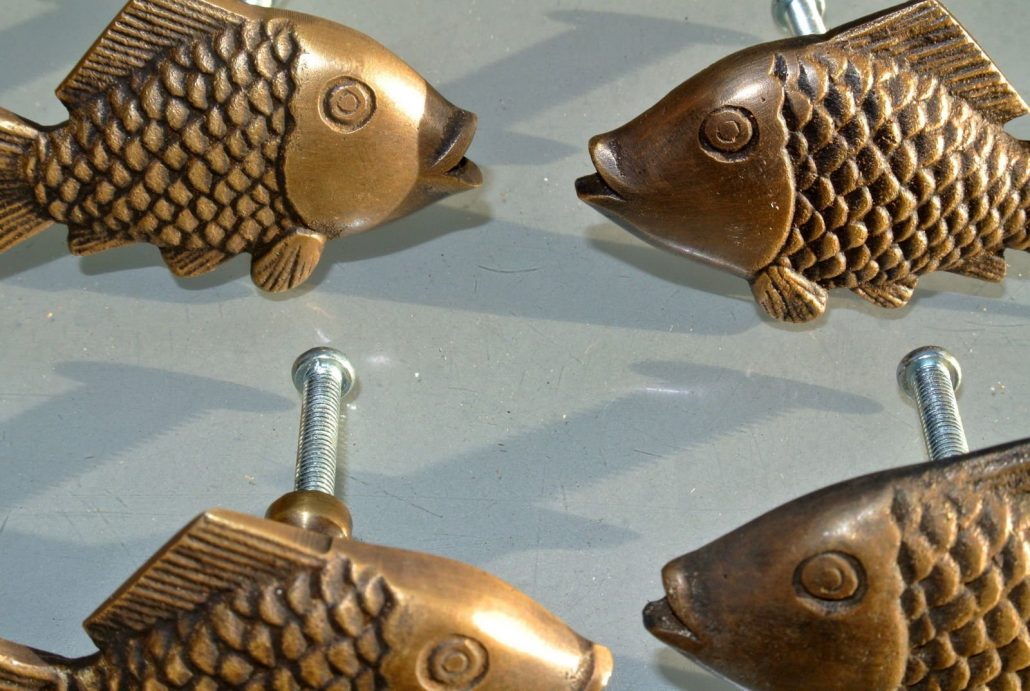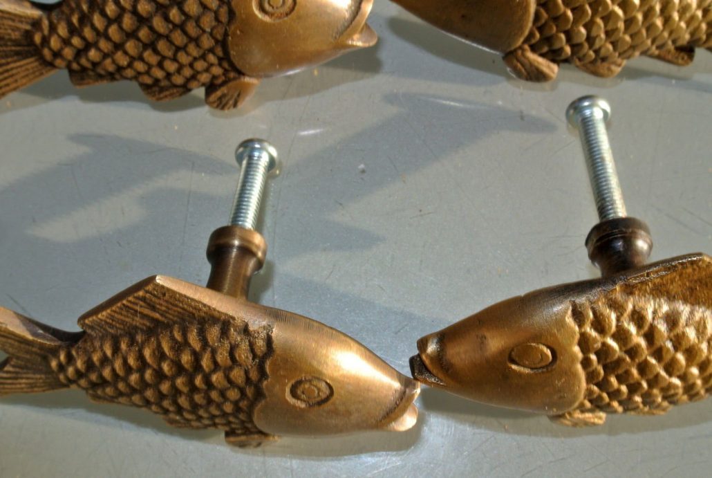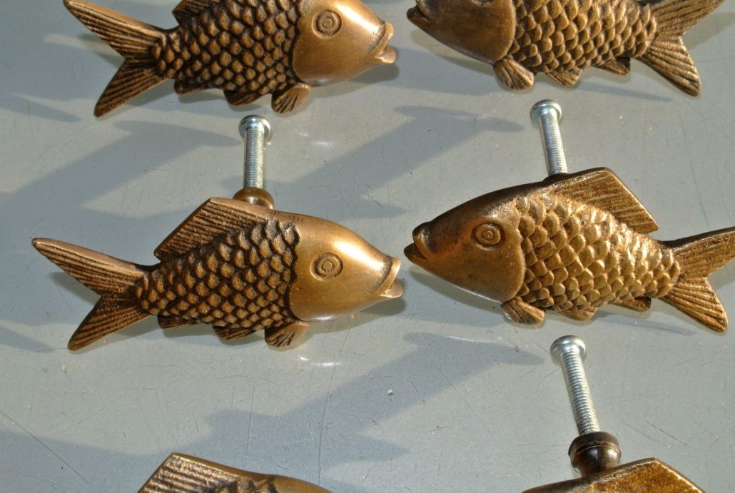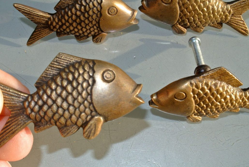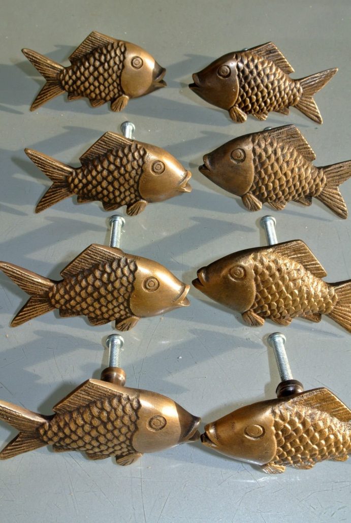 8 old looking FISH HANDLES KNOBS