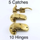 5 offset 3/4″ inch & 10 hinges brass Set rare POLISHED ICE BOX CATCH...